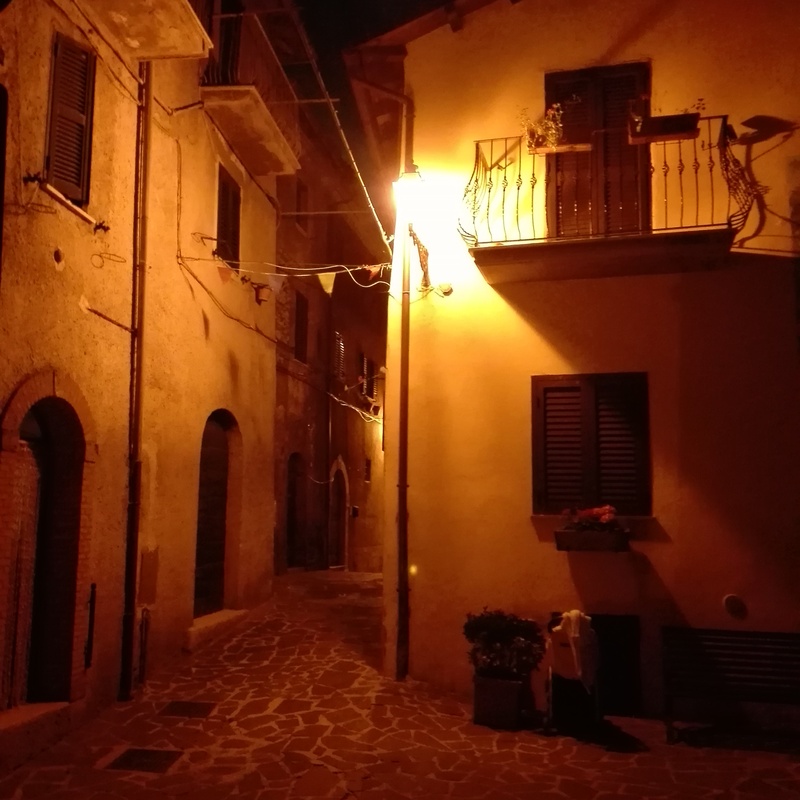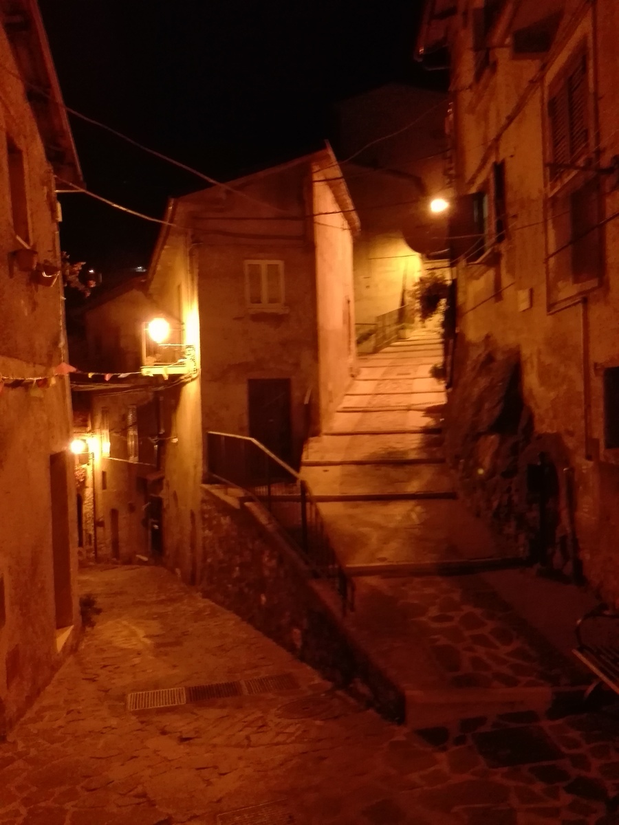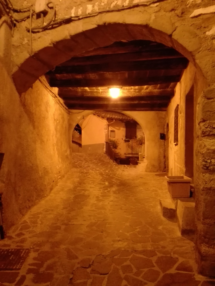 encargo desarrollado junto al compañero y amigo maurizio federici geometra, en el 1988 y a posteriori se desarrolló la dirección de obra en el 1996. las peculiaridades de los contenidos del proyecto fueron y son muy esperadas, teniendo en cuenta muchos rincones del aldea que de noche, se convierte en un autentico cuadro surrealista sobretodo en invierno.se iluminó la torre de la iglesia,tanto directamente que con efecto silueta; se iluminó el monumento a los soldados caídos en dos guerras mundiales; mediante el uso de linternas en acero forjado con lámparas con vapores de sodio se consiguió un efecto cálido típico de los cascos históricos de la comunidad autónoma del lazio.