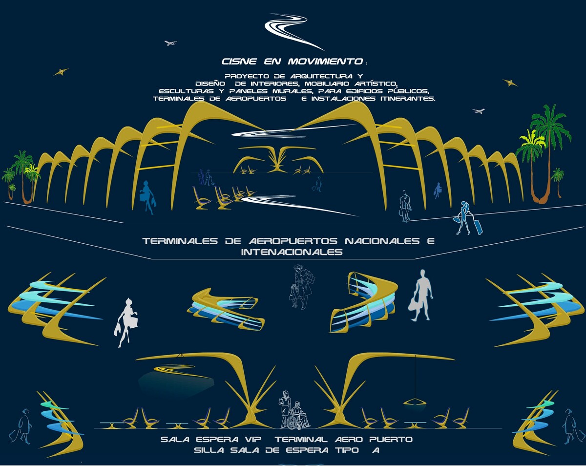 PROYECTO DE ARQUITECTURA Y DISEÑO DE INTERIORES mobiliario artístico, esculturas y paneles murales, para edificios públicos, terminales de aeropuertos e instalaciones itinerante
