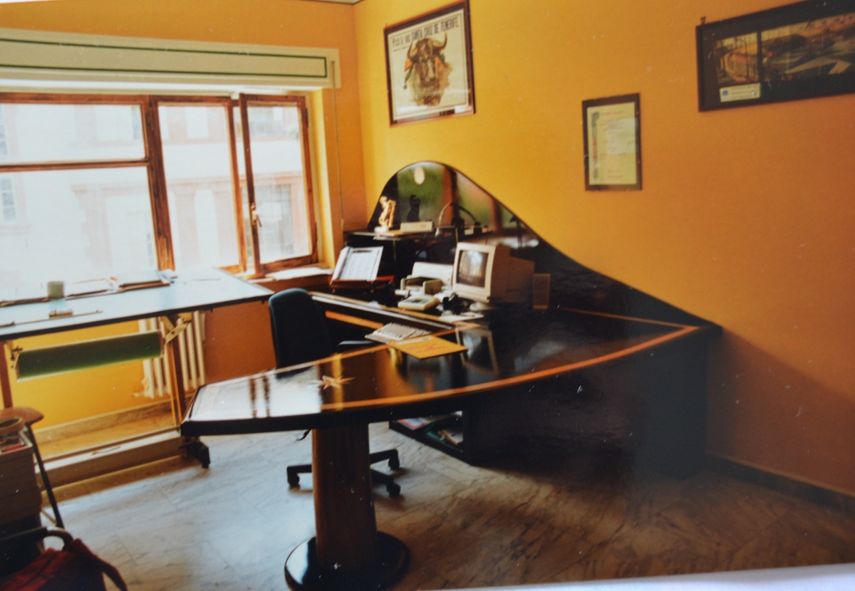VELAS Y DUNAS es un elemento de mobilario diseñado para la mesa principal del estudio de arquitectura “ ON studio” en 1997, realizado a mano de forma artesanal ha sido el resultado de una fusión llena de contraste entre las dunas del desierto africano del sahara y los verdes bosques de castaño de las montañas de italia. El elemento dominante, es la vela...que acompaña la presentacónes de los proyectos y de propuestas creativas.....se sustenta sobre un mastíl macizo constituido desde un tronco de castaño de 30 cm de diámetro....